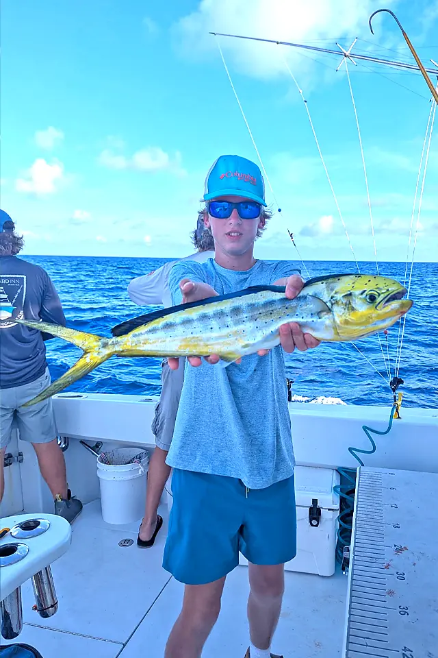 Your day starts at the dock where you'll board our immaculate Hatteras – a true fishing machine built for comfort and performance. With room for up to six anglers, there's plenty of space to fish without bumping elbows, plus all the amenities you'd expect from a top-rated charter operation. We've got your tackle sorted, fresh bait ready to go, and all fishing licenses handled, so you can focus on what matters: landing fish. The boat's layout is perfect for working multiple lines, whether we're pulling spreads for mahi or dropping baits in the depths for snappers and groupers. Our crew runs a tight ship but keeps the atmosphere relaxed – they're there to coach you through fights, net your catches, and share stories from decades on these waters. The half-day format is ideal for families with kids or anyone wanting a taste of offshore action without committing to a full day.